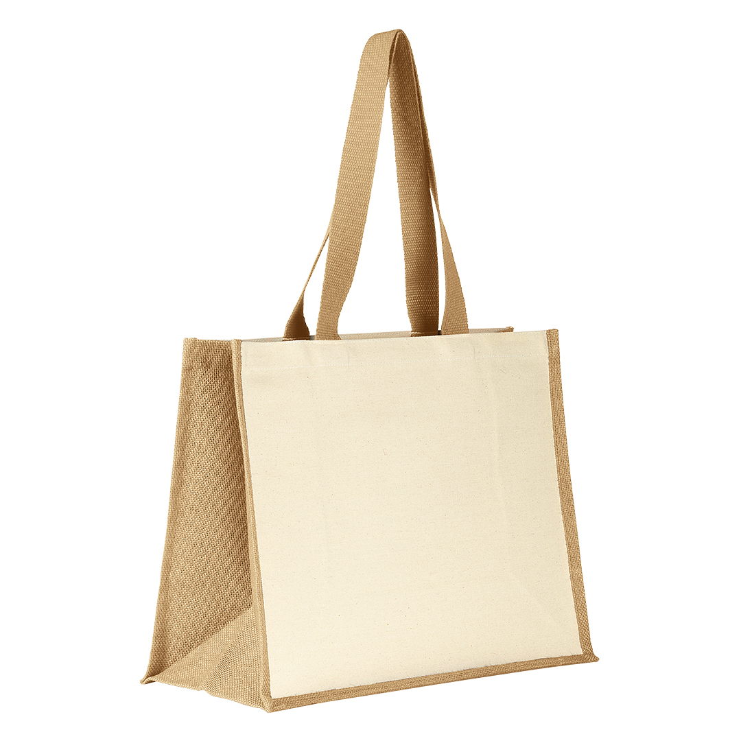 TAHITI është një çantë moderne për blerje, e kombinuar me perfeksion midis jutës natyrale dhe pambukut premium. Paneli i përparmë pambuku ofron një sipërfaqe ideale për printim të pastër dhe të saktë të logove të kompanisë dhe mesazheve promovuese, ndërsa anët e jutës sigurojnë qëndrueshmëri maksimale. Dorezat e gjata pambuku garantojnë komoditet në mbartje, bëjnë TAHITI-n zgjedhje e përkryer për evente, konferenca, dhe kampanja marketingu. Me kapacitet të gjerë për artikuj të ndryshëm, përshkak të kombinimit të materialeve dhe vëllimit praktik, kjo çantë shërbej si mjet promovues efektiv për bizneset që kërkojnë cilësi, personalizim dhe shpejtësi prodhimi në sasi të mëdha.