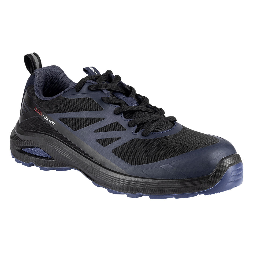 Pjesa e sipërme është punue nga pëlhurë e kombinume me përforcime TPU, që ofron frymshmëri të mirë, peshë të reduktume dhe mbrojtje shtesë mekanike në zonat e konsumimit të lartë. Ky konstruksion rrit fleksibilitetin dhe kontribuon në pamjen sportive të këpucës. Brendia ka veshje me frymshmëri të lartë, që ndihmon në rregullimin e lagështisë dhe siguron rehatë gjatë gjithë ditës së punës. Mbrojtja e gishtërinjve sigurohet nga kapaku i fibrës nano karboni, që është dështueshëm më i lehtë se çeliku por ruan rezistencën e lartë ndaj goditjes dhe siguron dizajn plotësisht pa metal. Shtresa e brendshme nga shkuma me densitet të lartë ofron mbështetje shtesë të këmbës dhe ndihmon në reduktimin e lodhjes gjatë përdorimit të zgjatun. Shollat e dyfishtë të poliuretanit ofrojnë absorbim efektiv të goditjeve dhe stabilitet në ecë, me rezistencë ndaj rrshqitjes, vajrave dhe konsumimit. Vetia ESD mundëson largimin e kontrollum të elektricitetit statik, që është thelbësore në mjedise me pajisje elektronike ose komponente të ndjeshme. Modeli GRIZZLY është pjesë e gamës Tekton Pro dhe është veçanërisht i përshtatshëm për logjistikë, depo, industri të lehtë, aktivitete shërbyese, vende pune të brendshme dhe objekte me sisteme detektimi metali.