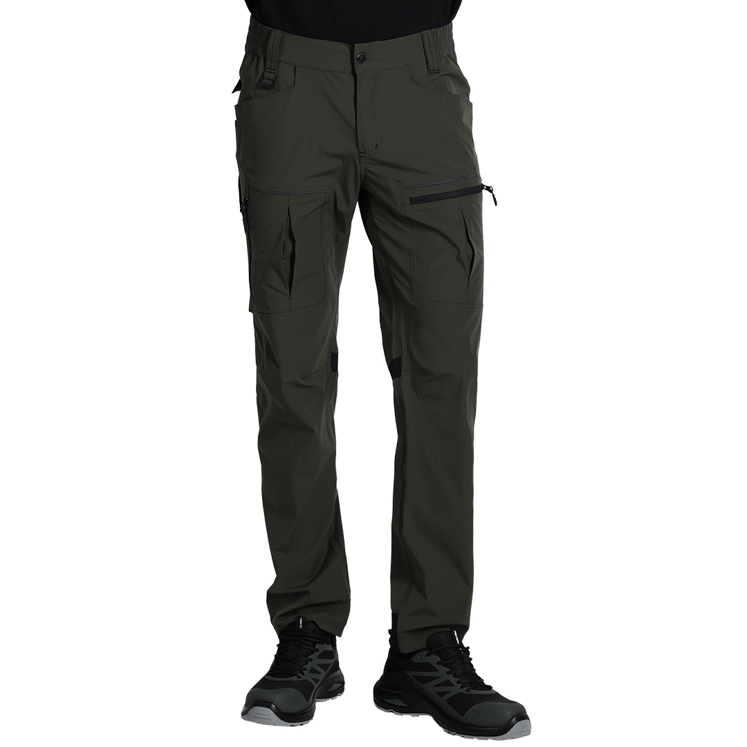 Materiali i hollë, elastik siguron komoditet të lartë gjatë bartjes tërëditore, ndërsa brezi i zgjatur në pjesën e pasme siguron mbrojtje dhe stabilitet shtesë gjatë përkuljes dhe lëvizjes. Radhitja funksionale e xhepave mundëson ruajtje të sigurt dhe praktike të veglave dhe sendeve personale, duke përfshirë xhepa me zinxhirë YKK. Qepjet e trefishta në zonat kritike përmirësojnë qëndrueshmërinë, ndërsa panelet e përforcuara të pasme të këmbëve rrisin rezistencën në zonat me konsum të lartë. Detajet reflektuese diskrete përmirësojnë dukshmërinë në kushte me dritë të dobët.