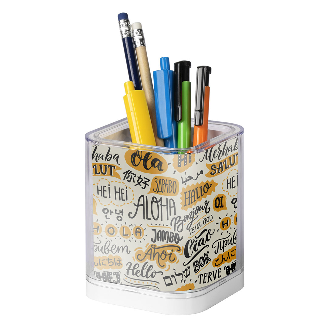 SCATOLA është mbajtëse plastike e qëndrueshme, ideale për organizimin e hapësirës së punës në zyrë, shkollë ose shtëpi. Ky aksesor kompakt mbajnë lapsa, stilolapse, shënues dhe mjete të tjera zyre, duke i mbajtur të rregulluar dhe lehtë të arritshme. I përpunuar me plastikë të cilësisë së lartë, SCATOLA mund të personalizohet me printim logovash ose teksti të kompanisë, duke e bërë atë një artikull promovues praktik dhe të dobishëm. Përshtatshëm për dhurata punonjësish, eventi korporativ ose konferenca, sigurohet në paketim PVC. JusaPrint ofron sasi të mëdha me afate të shpejta dhe personalizim sipas kërkesave tuaja.