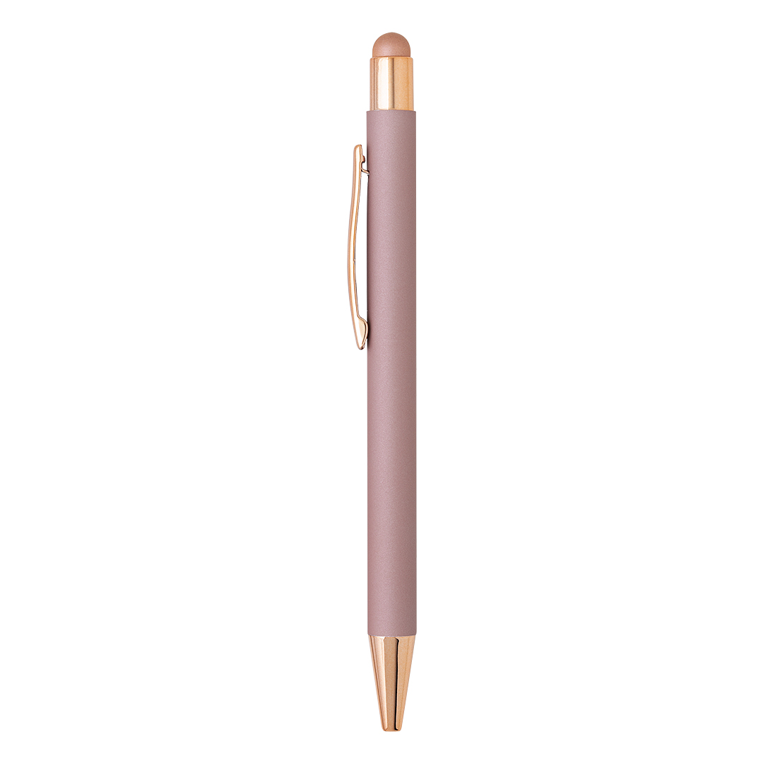 Stilolapsi TITANIUM TOUCH COLOR është një model modern promovues prej alumini me përfundim Soft touch dhe detaje me akcentim me ngjyrë që përputhen me trupin. Sipërfaqja e këndshme siguron mbajtje komode dhe të sigurt, ndërsa maja TC 0.7 mm ofron shkrim të lëmuar dhe të njëtrajtshëm me bojë blu të përshtatshme për kërkesat standarde të zyrës. Maja e integruar për ekran me prekë e bën një aksesor praktik për mjedise bashkëkohore të biznesit. Përfundimi mat i kombinuar me detaje me shkëlqim në ngjyrën e trupit krijon një pamje terhekëse dhe profesionale, ndërsa gama e gjerë e ngjyrave mundëson përshtatje të lehtë në fushata të ndryshme promovuese dhe identitete të brand-it.