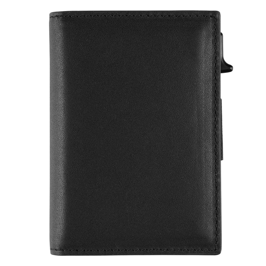 Mbajtes kartash nga lekura me mbrojtje RFID, i bere nga lekura e vertete me perfundim te lemerishem, i dizajnuar per ruajtje te sigurt te kartave dhe te dhenave personale. Mbrojtja RFID parandalon skanimin e paautorizuar te kartave, ndersa brendia perfshin nje ndarje per deri ne 5 karta dhe nje seksion transparent. Mekanizmi pop-up mundeson qasje …