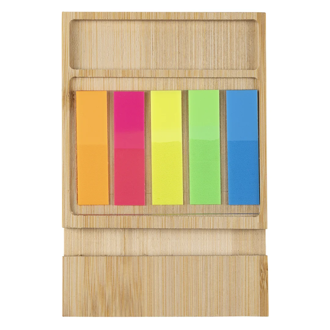 Mbajtes bambuje per telefon mobil i dizajnuar si aksesor praktik per tavolinen e punes per perdorim te perditshme dhe promovues. Perfshin nje set shenjesash fletushkash vetengjitese ne pese ngjyra te ndryshme, duke e bere organizimin dhe nxjerrjen ne pah me te lehte. Mbajtes perfshin gjithashtu nje ndarje te dedikuar per gjera te vogla zyresh si …
