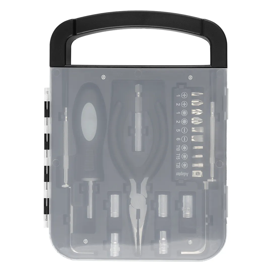 BOB është set vegësh dore gjithëpërfshirës dhe praktik për riparime bazike, ideal për përdorues që vlerësojnë praktikabilitetin, qëndrueshmërinë dhe përdorimin e versatilshëm. Të gjitha komponentët janë të bëra nga çeliku inox, duke siguruar rezistencë dhe performancë afatgjatë. Veglat janë të paketuara me kujdes në kuti plastike me dorezë transporti. Seti përmban 2 kaçavidë fiks, mbajtës …