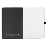 Bllok shënimesh në formatin A5 me buzë të rrumbullakëta dhe detaje dizajni të përcaktuara qartë, i krijuar për përdorim promovues dhe biznesi. Buza e ngjyrosur e bllokut të librit dhe letra e brendshme e përputhur janë harmonizuar me ngjyrën e shiritit elastik, duke i dhënë bllokut të shënimeve pamje të pastër dhe profesionale. Përfshin mbyllje …