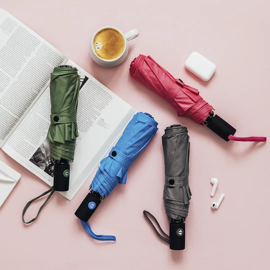 Ombrellë e palosshme rezistente ndaj erës me hapje dhe mbyllje automatike – produkt promovues praktik për përdorim të përditshëm dhe afarist. Shufra metalike e zezë 3-pjesëshe mundëson palosje kompakte dhe transportueshmëri të lehtë, ndërsa brinjët metalike U sigurojnë stabilitet dhe rezistencë ndaj erës. E punuar nga materiali i qëndrueshëm 190T poliester, ombrellës ofron mbrojtje të …