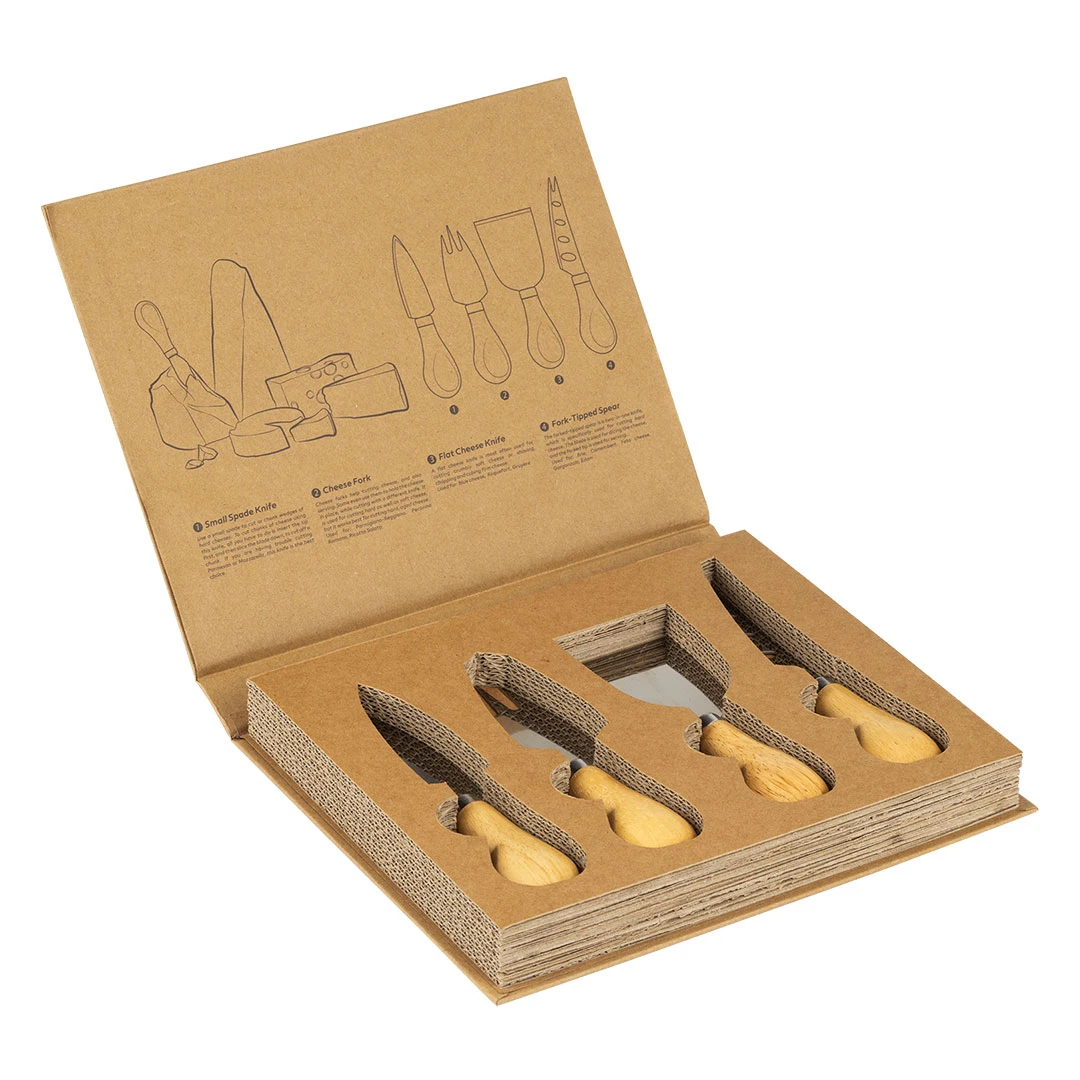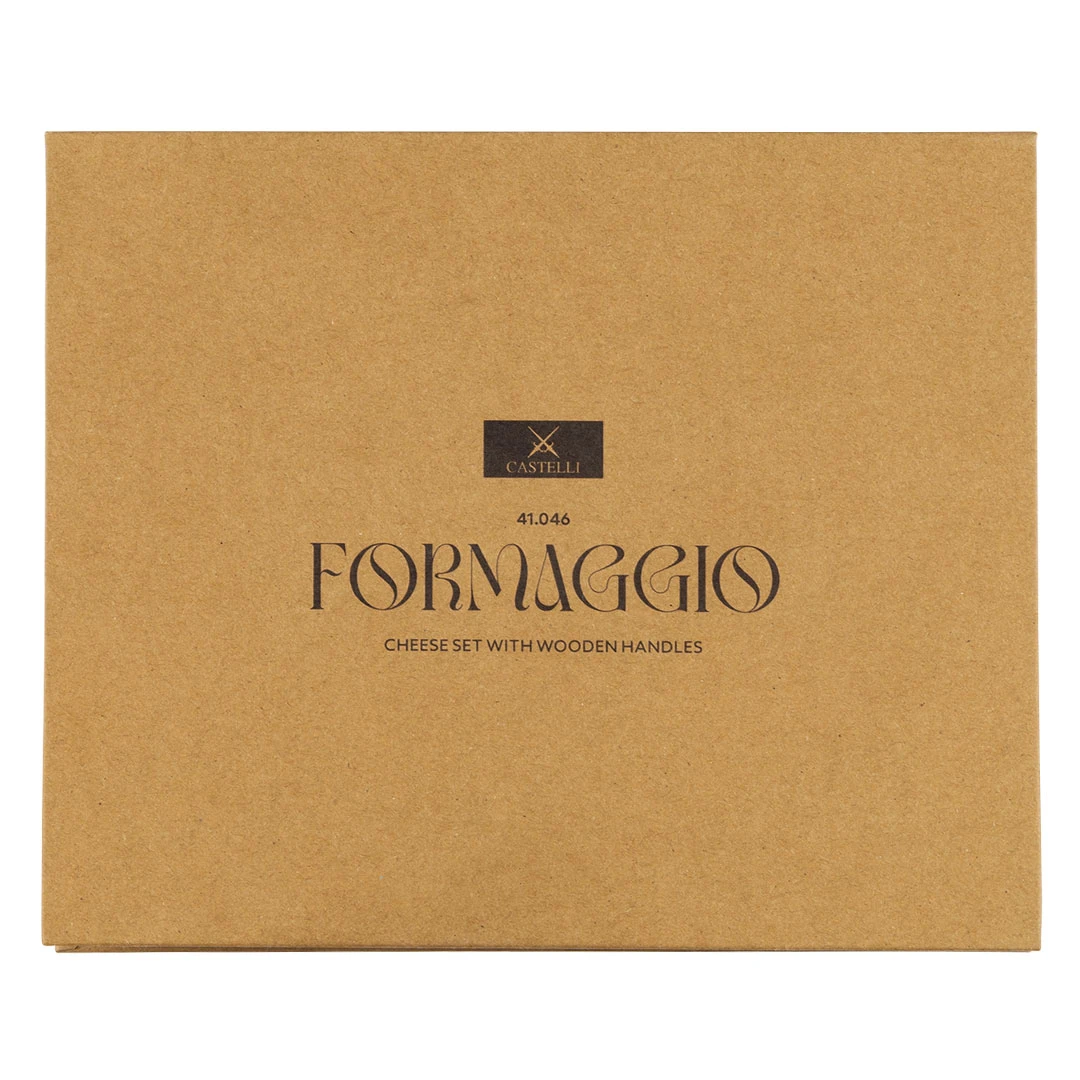 Seti FORMAGGIO për djathë është një dhuratë promovuese ideale për të gjithë dashamirësit e djathit dhe gastronomisë. Seti përfshin një dërrasë servimi prej druri dhe katër thika të specializuara për lloje të ndryshme djathash të fortë dhe të butë, duke siguruar servimin e duhur, praktik dhe elegant. Dërrasa është e punuar nga druri natyral dhe …