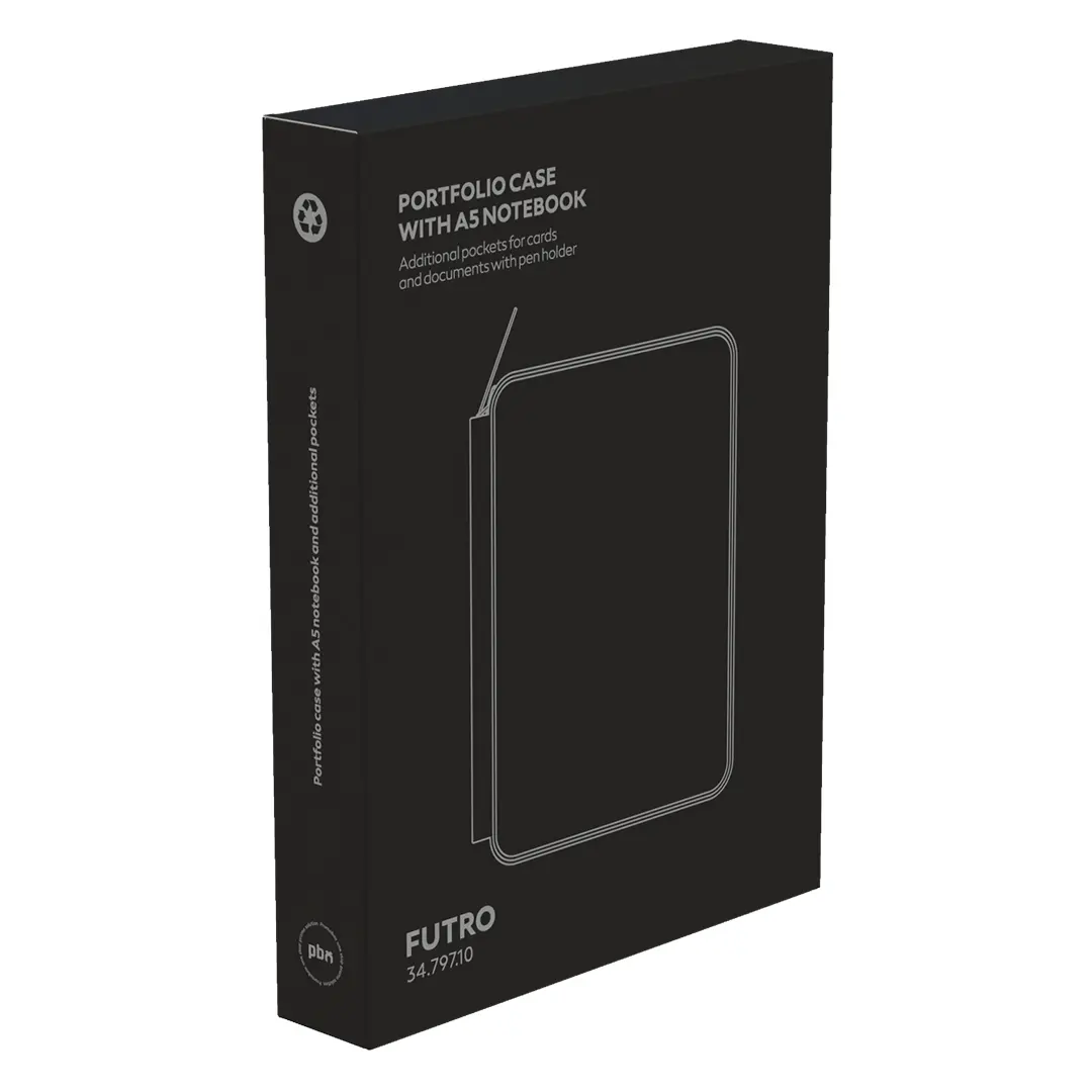 Dosje me bllok shënimesh në formatin A5, e dizajnuar për përdorim biznesi dhe promovues. Ka xhepa shtesë për karta dhe dokumente, së bashku me mbajtëse për laps për organizim praktik. Blloku i shënimeve përfshin bllok libri me vija me 128 faqe letër krem (80 g/m²). Furnizohet në kuti dhurate, duke e bërë të përshtatshme për …
