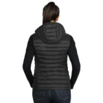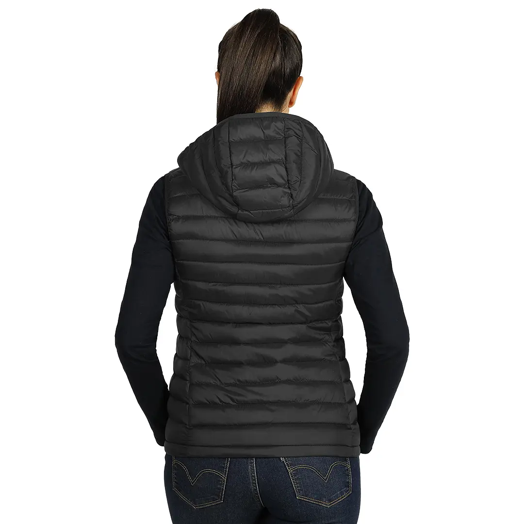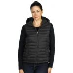Jelek me kapelë për femra, i mbushur me tegela, dy xhepa para, tuba elastikë rreth shpatullave, kapuç dhe xhepa