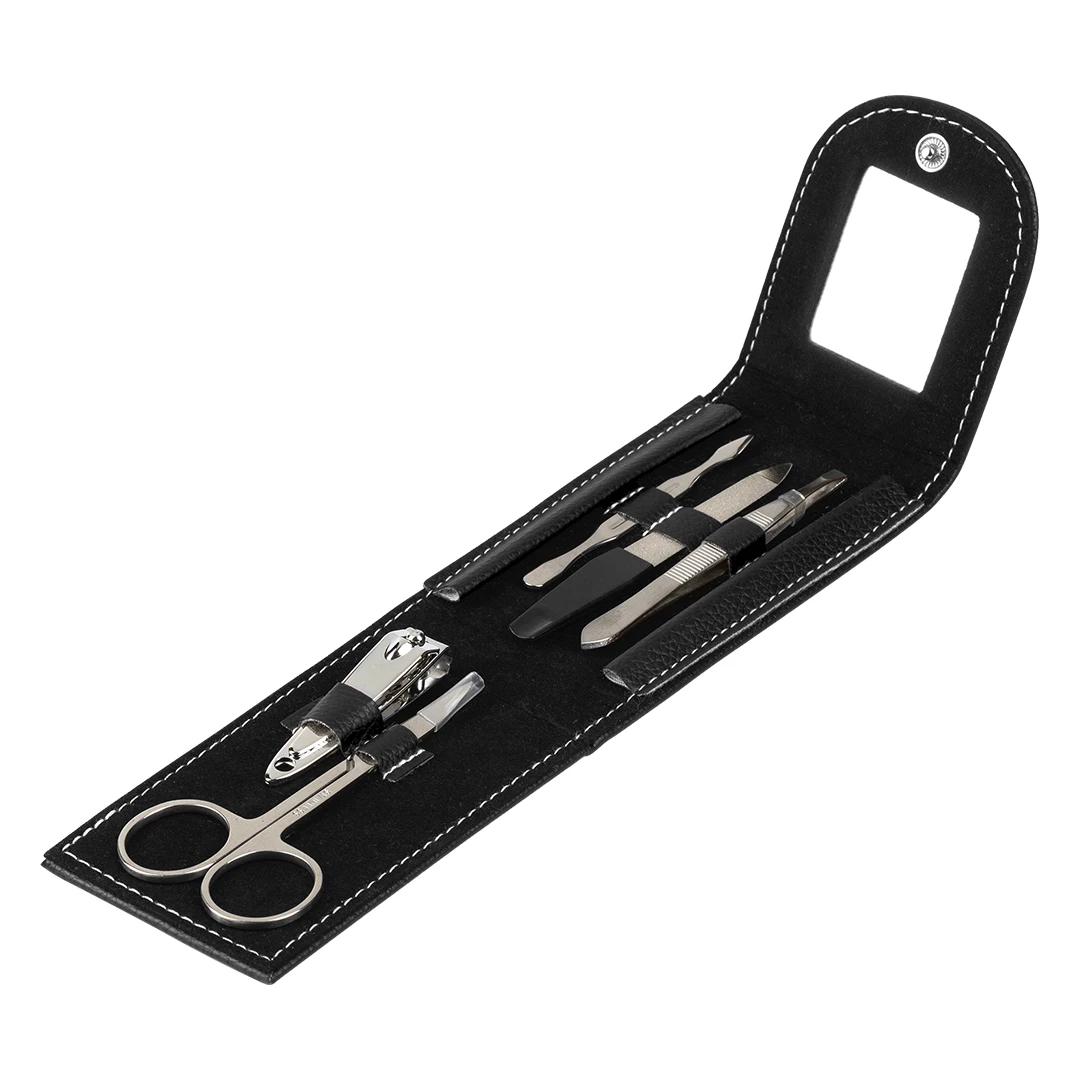 KIARA është një set manikyr i paketuar në një kuti praktike prej lëkure PU, i dizajnuar si një model më i thjeshtë nga koleksioni ynë i manikyrit. Seti përfshin vegla prej çeliku inoks të cilësisë së lartë – prerës thonjsh, limë thonjsh, pincetë, gërshërë dhe shtytës kutikule – së bashku me një pasqyrë kompakte brenda …