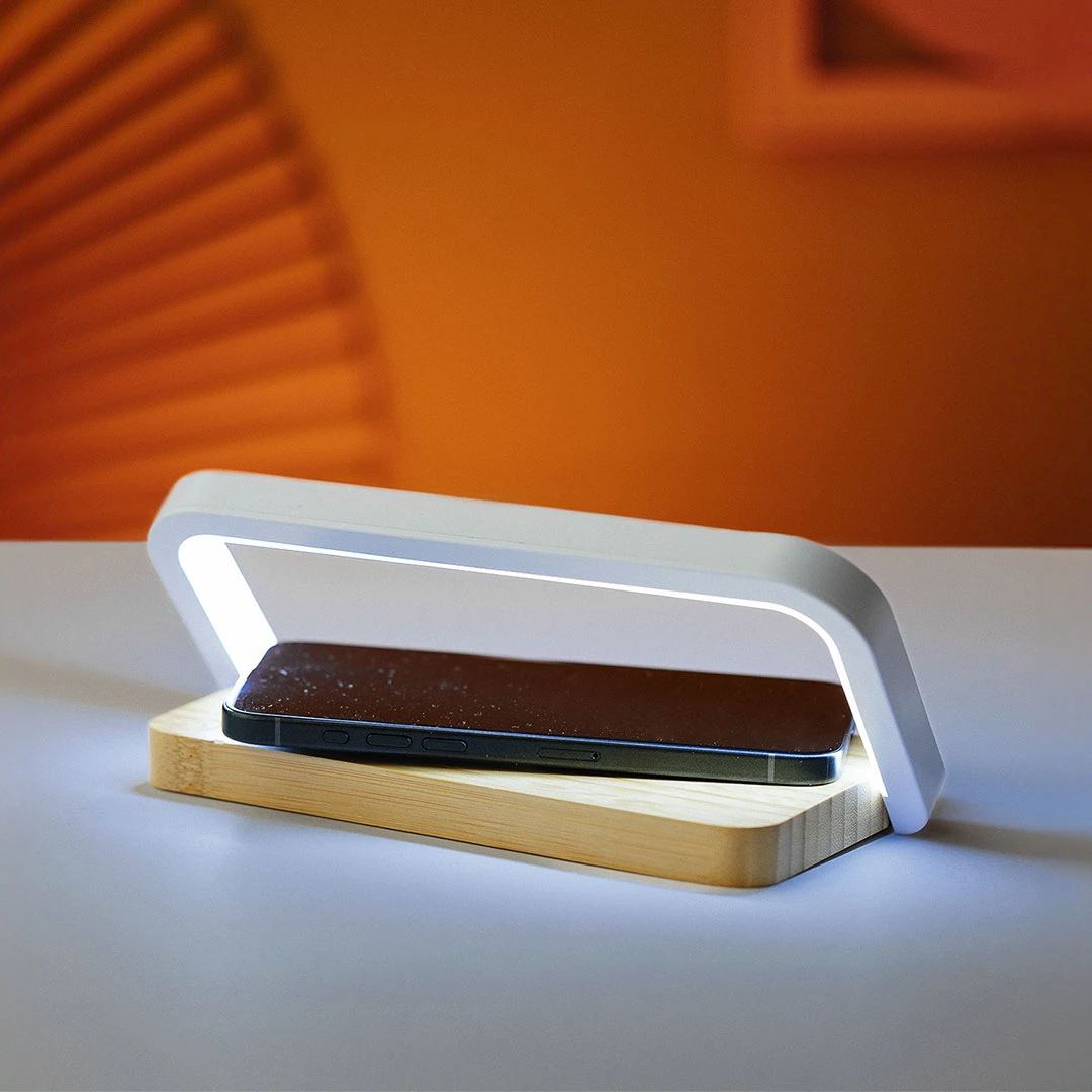 Mbushës pa tela me mbajtsi telefoni dhe llambë të integruar, i dizajnuar për përdorim praktik në tavolinë ose në tavolinën e gjumit. Mbështet mbushje pa tela deri në 15W dhe është i pajtueshëm me të gjitha pajisjet mobile që kanë teknologji Qi. Veçoritë kryesore: Mbushës pa tela dhe mbajtsi telefoni me llambë • Mbushje pa …