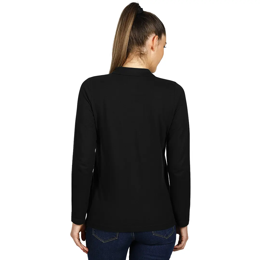 Bluzë pambuku pollo për femra , 200 g / m2, pak bel, e qepur anash, qepje të dyfishta në mëngë dhe në fund, katër butona në ngjyrën e këmishës, buton rezervë, qepje shtesë përgjatë shpatullës, jakë e përforcuar me shirit , çarje anësore