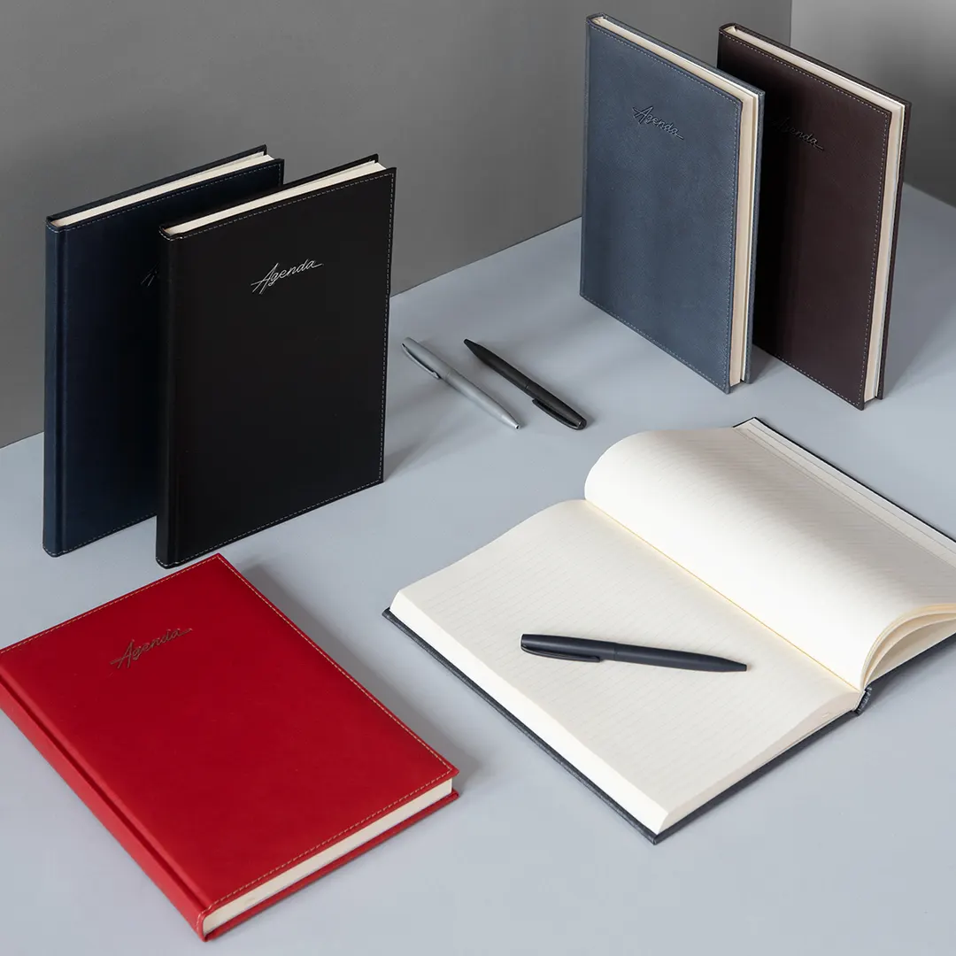 Agendë në formatin B5 me kornizë dekorative në kopertinën e përparme, e dizajnuar për përdorim biznesi dhe korporativ. Dizajni klasik dhe përfundimi i pastër e bëjnë të përshtatshme për planifikim të përditshëm, mbledhje dhe dhurata korporative me markë. Blloku i librit me vija me 224 faqe letër krem (80 g/m²) siguron shkrim të rehatshëm dhe …