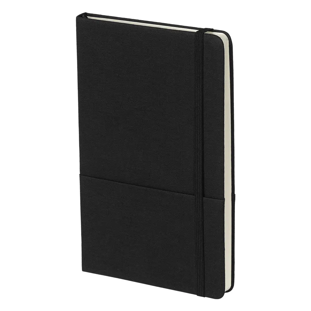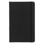 Bllok shënimesh në formatin A5 me buzë të rrumbullakëta, i dizajnuar për përdorim biznesi dhe promovues ku kërkohen mundsi shtesë për ruajtje. Ka mbyllje elastike dhe xhepa në kopertinën e përparme dhe të pasme, të përshtatshëm për dokumente ose letra të lira. Blloku i librit me vija me 192 faqe letër krem (80 g/m²) mbështet …