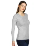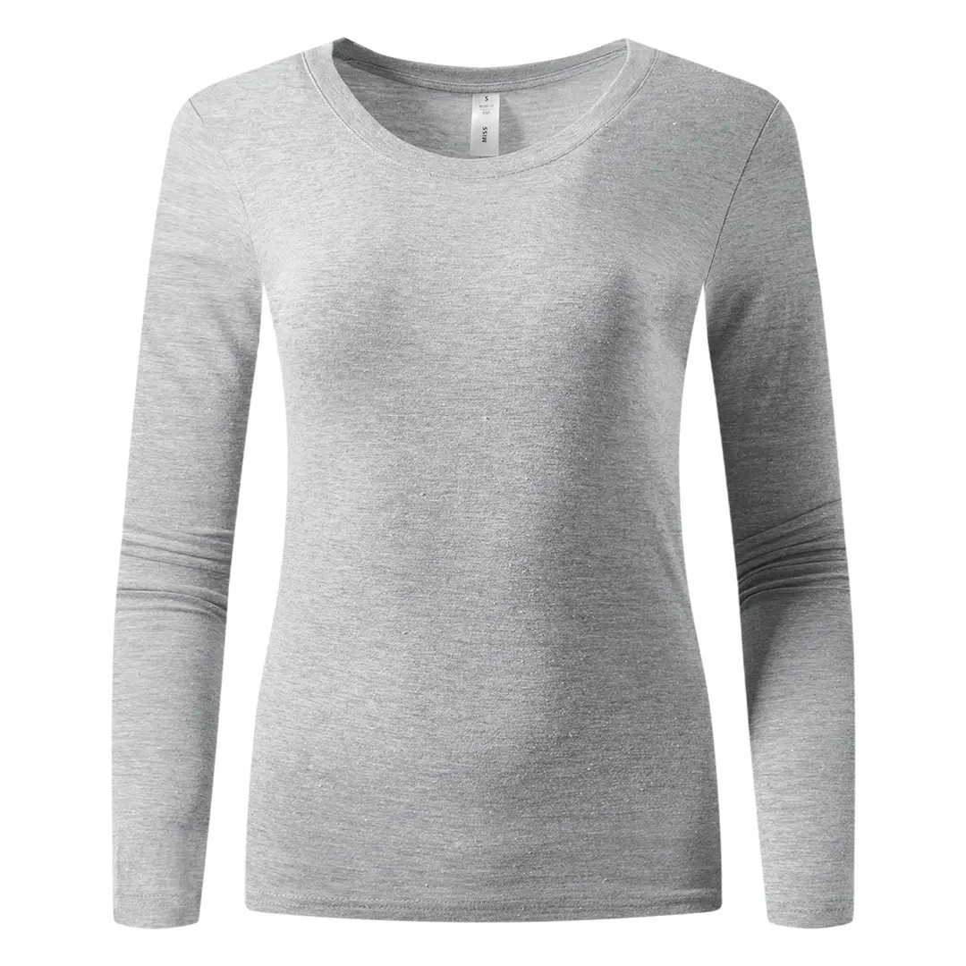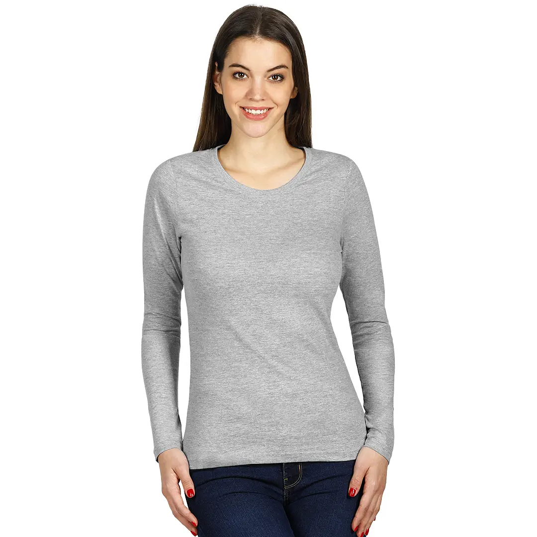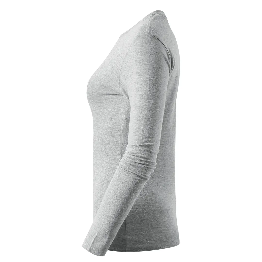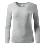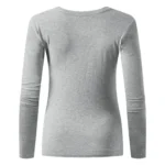Bluzë pambuku me mëngë të gjata për femra, 160 g/m2, pak bel, e qepur anash, qepje të dyfishta në mëngë dhe në fund, qepje rreth pjesës së poshtme dhe qepje shtesë përgjatë shpatullës, jakë e përforcuar me shirit