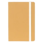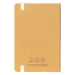 Bllok shënimesh në formatin A5 me buzë të rrumbullakëta dhe mbyllje elastike, i dizajnuar si artikull promovues me fokus ekologjik. Kopertina është punuar nga lëtra kraft e larueshme, ndërsa blloku i brendshëm i librit është prodhuar nga lëtra e ricikluar, duke e bërë të përshtatshëm për fushata të orientuara në qëndrueshmëri. Blloku i librit me …