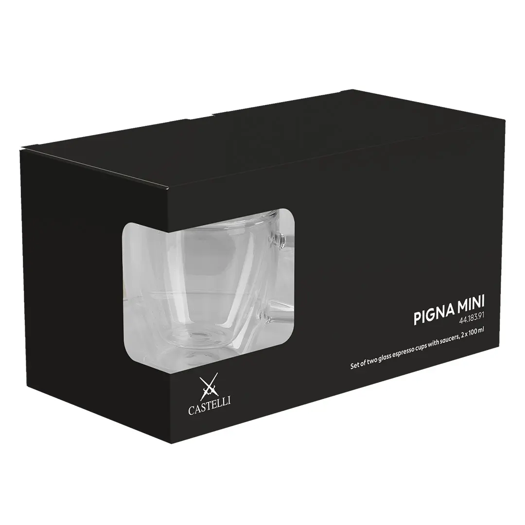 PIGNA MINI osht nji set me dy filxhanë qelqi me dy pjata të bame nga xhami borosilikat, nji material i njoftun për rezistencën e lartë ndaj shokut termik, qëndrueshmërinë dhe strukturën e lehtë – ideal për përdorim të përditshëm me pije të nxehta. Me kapacitet 100 ml për filxhan, ky set osht veçanërisht i përshtatshëm …
