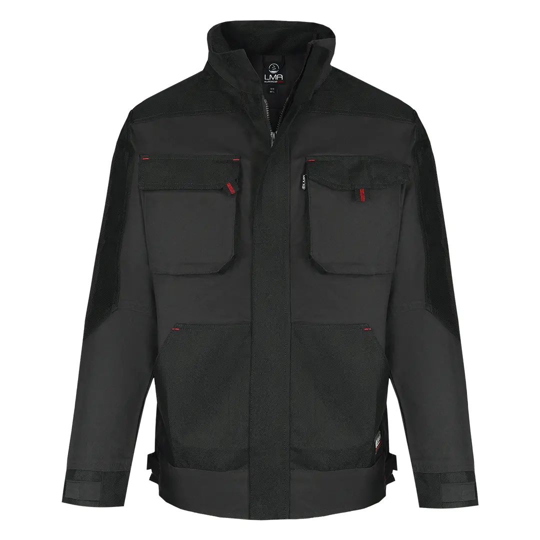 Xhaketë pune 300g/m2 endje kanavacë, jakë e lartë, rrathë rreth mëngëve me rrip velcro për të rregulluar gjerësinë e mëngëve, dy xhepa në gjoks, dy xhepa përpara