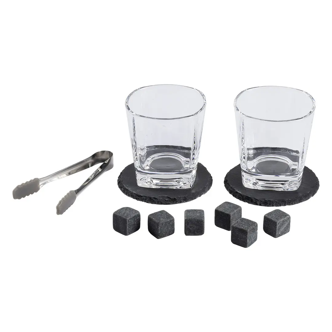 Seti REBEL për pije është i dizajnuar për dashamirësit e pijeve të mira dhe servimit elegant. I prezantuar në një kuti druri, seti përfshin dy gota qelqi tumbler, dy nënshtresa guri, gjashtë kube akulli guri dhe mashta akulli. Nënshtresat dhe kubet janë të punuara nga guri natyral i ardhëziasë, i njohur për qëndrueshmërinë e tij …