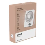 YUGO është një ventilator tavoline me pesë nivele të shpejtësisë dhe një ekran që tregon nivelin e mbushjes së baterisë, i dizajnuem për ftohje në tavolinën tuaj, në zyrë ose në shtëpi. Ka një bateri të rimbushshme me kapacitet prej 1200 mAh, konektori Type-C dhe kabllo USB/Type-C për mbushje të lehtë. I furnizuem në kuti …